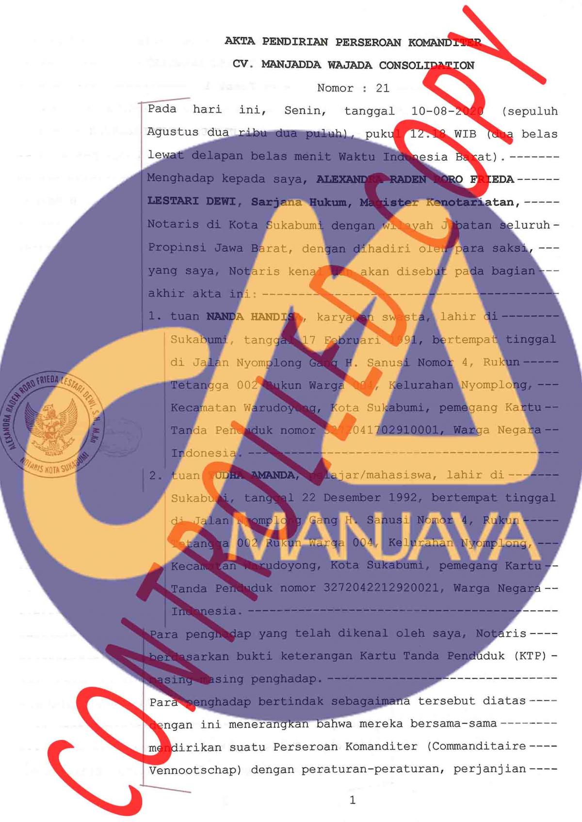 1. SK Terdaftar Kementerian Hukum dan HAM Republik Indonesia Direktorat Jendral Administrasi Hukukm Umum dengan Nomor AHU-0042126-AH.01.14 pada tanggal 10 Agustus 2020,