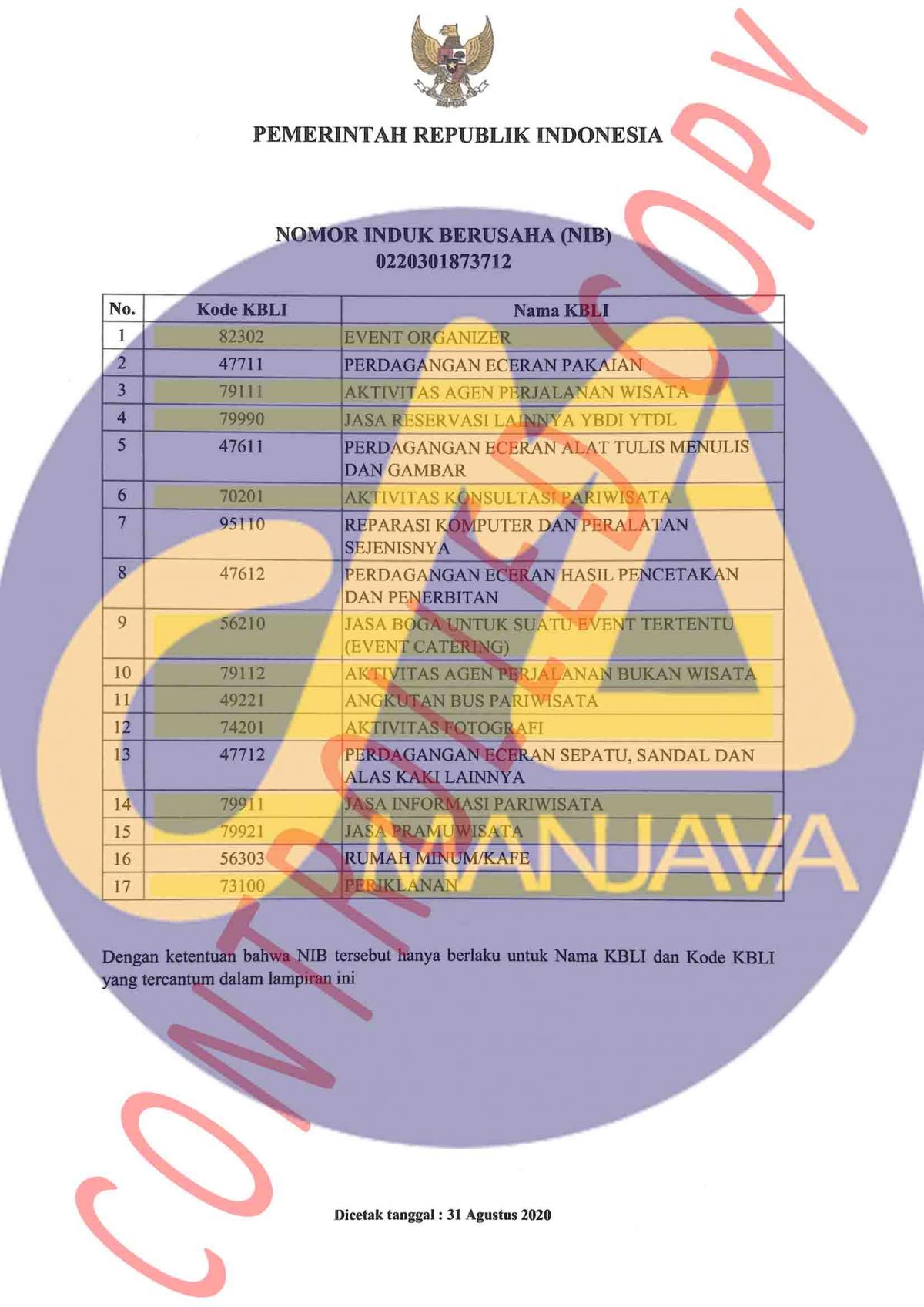 Client ataupun customer tidak perlu khawatir karena kami merupakan salah satu Tour Travel Organizer Berizin Resmi yang memiliki izin :